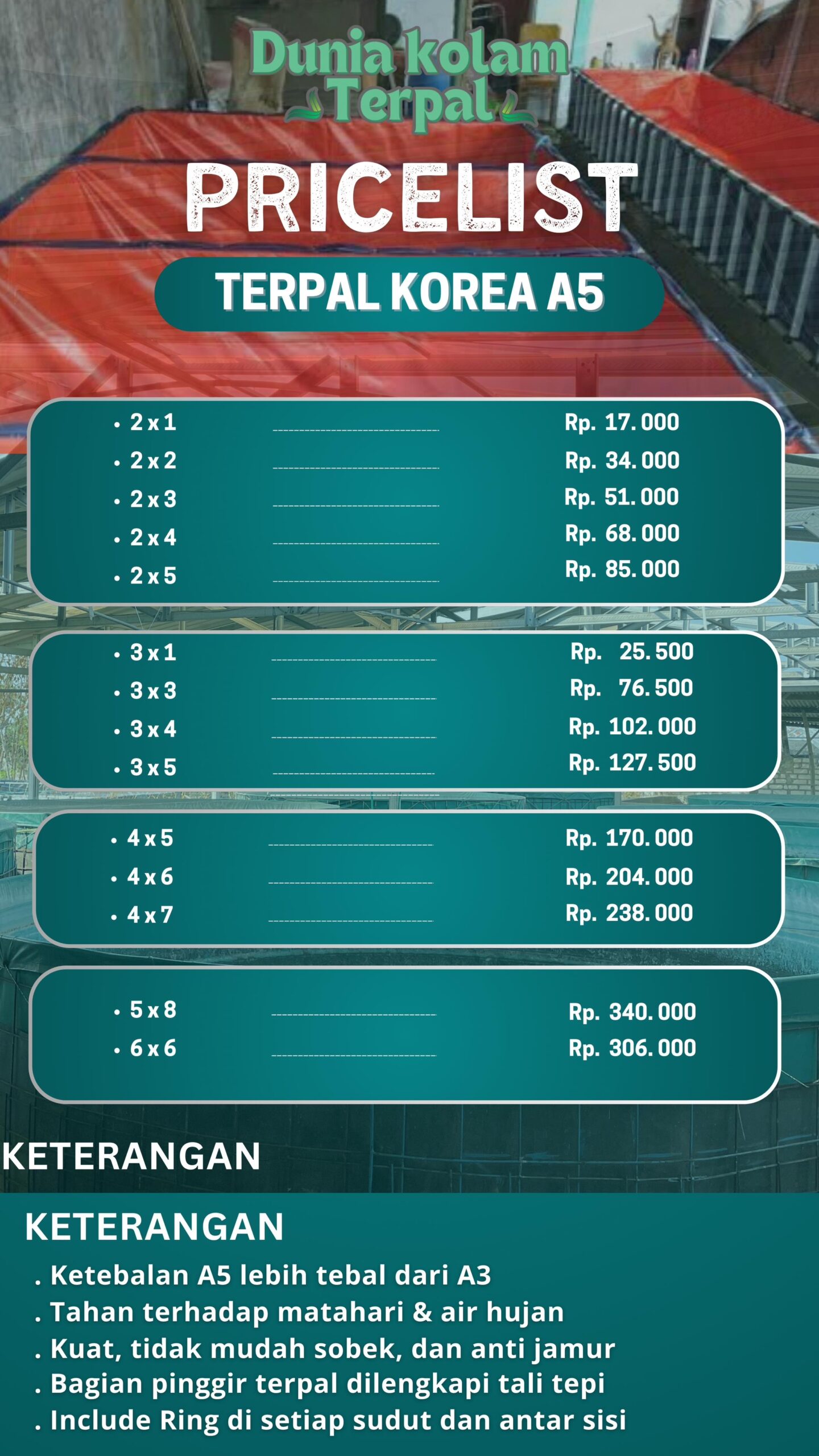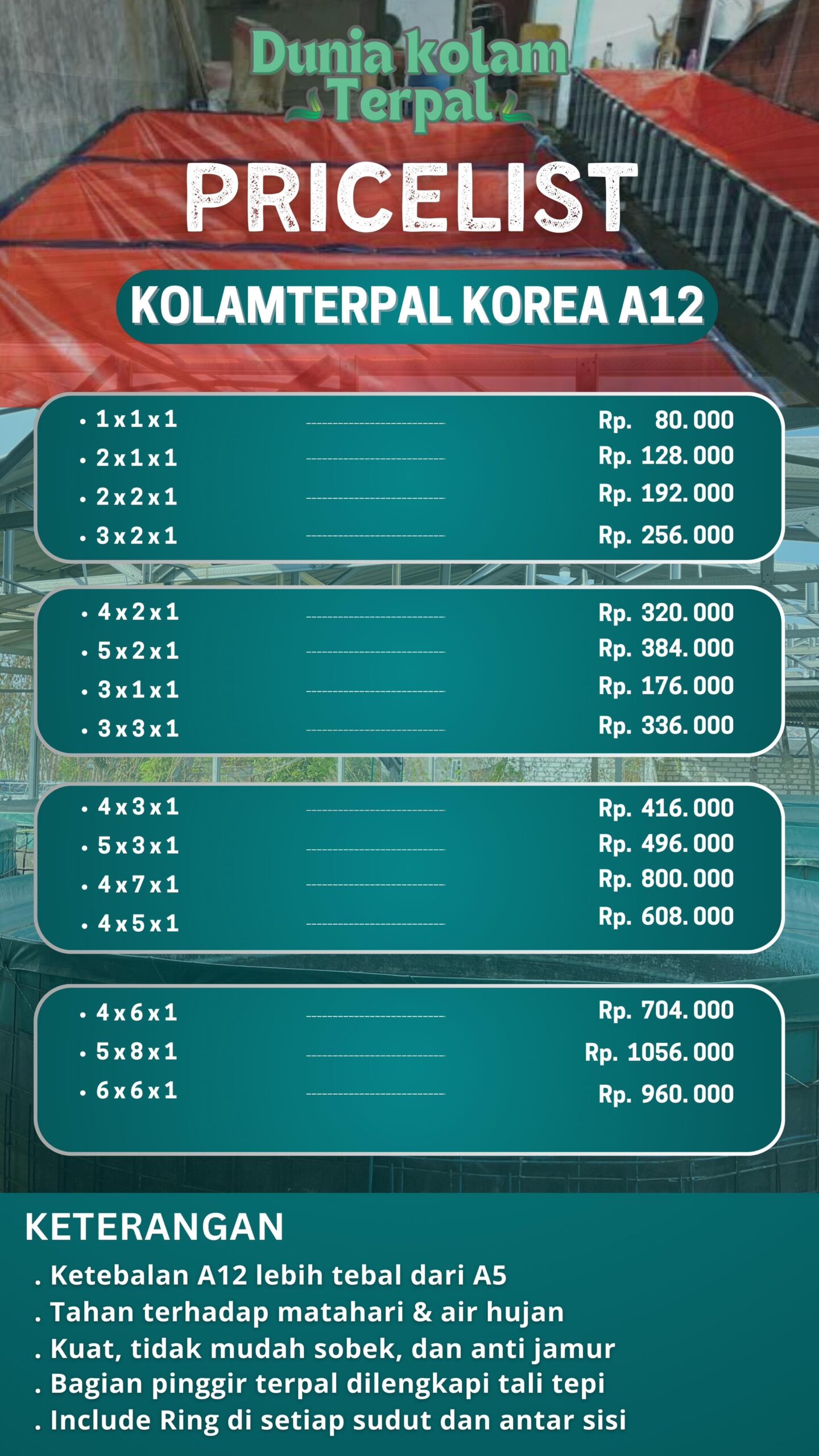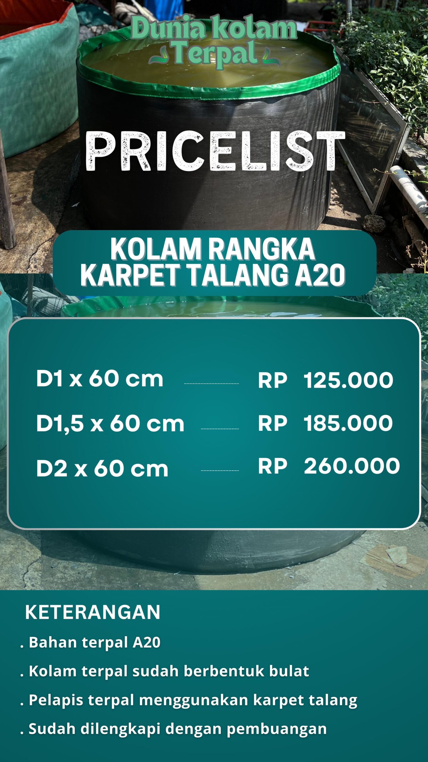 Pembeli tinggal merakit kolam terpalnya ketika sudah sampai lokasi. Dan cara merakitnya pun mudah dengan sistem plug in