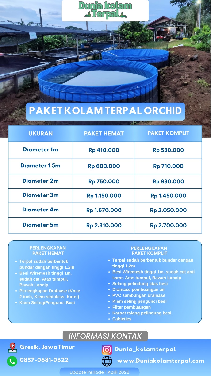 Kami menyediakan terpal saja dan juga paket komplit dengan kerangka penyangga.